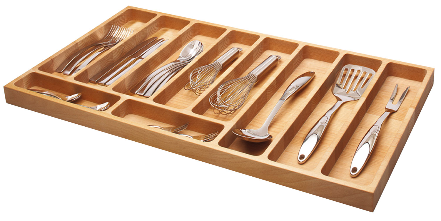 …nach geordneten Verhältnissen. Die sind auf hier auf jeden Fall gewährleistet: Im hochwertigen Besteckkasten aus massivem Buchenholz. 10 Fächer – gefräst aus einem vollen Buchenholzstück