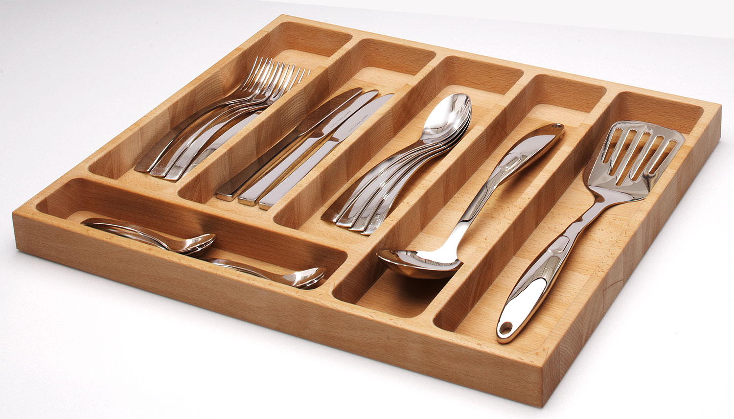 …mit dem annex Massivholz Besteck- einsatz Die 6 Fächer werden aus einem vollen Buchenholzstück gefräst