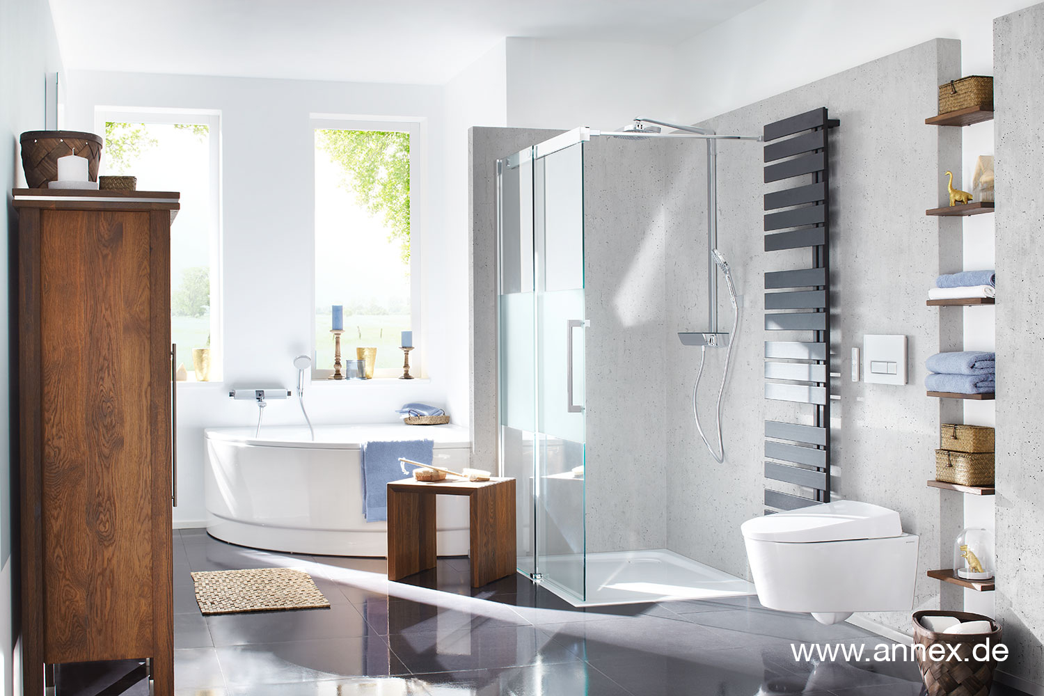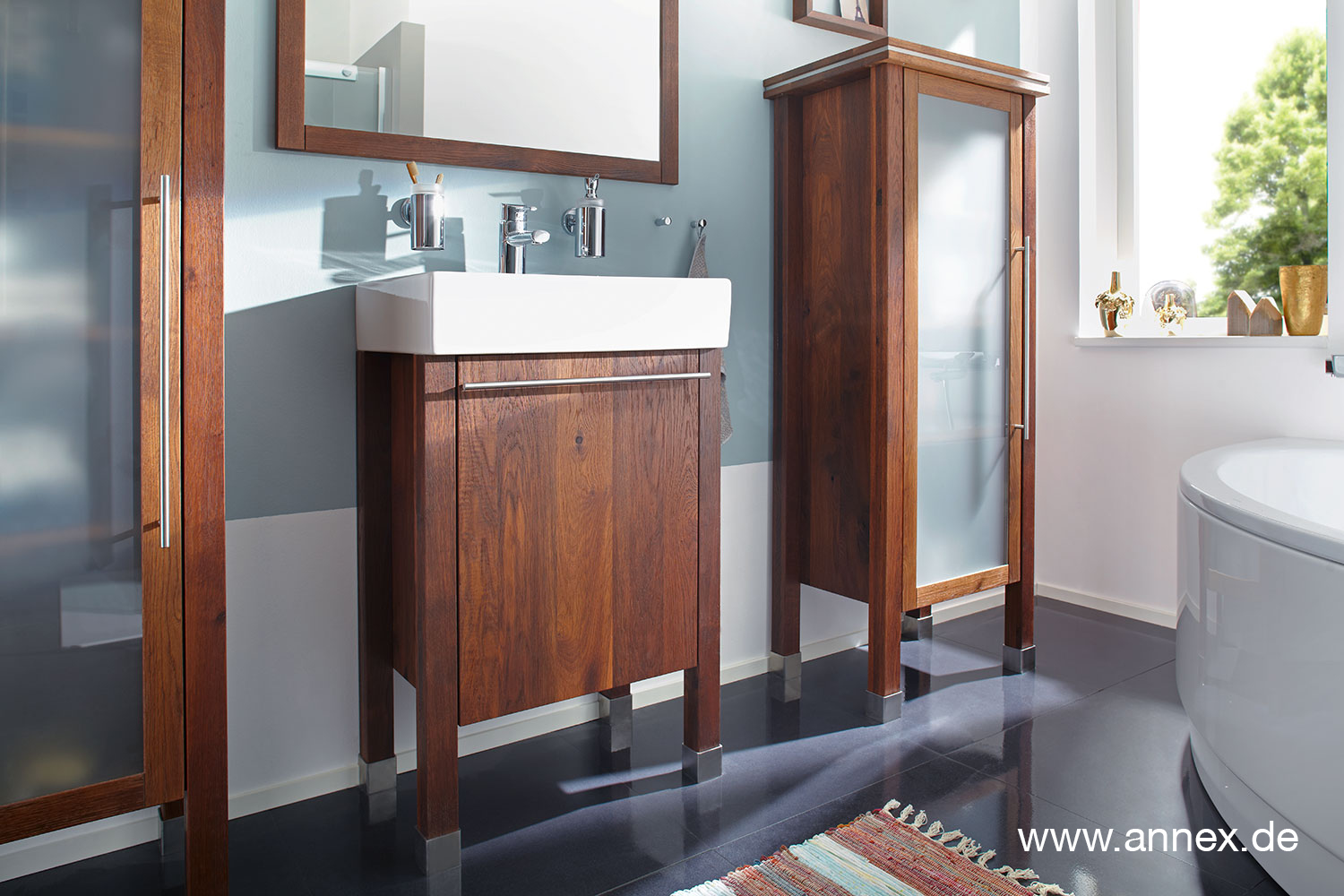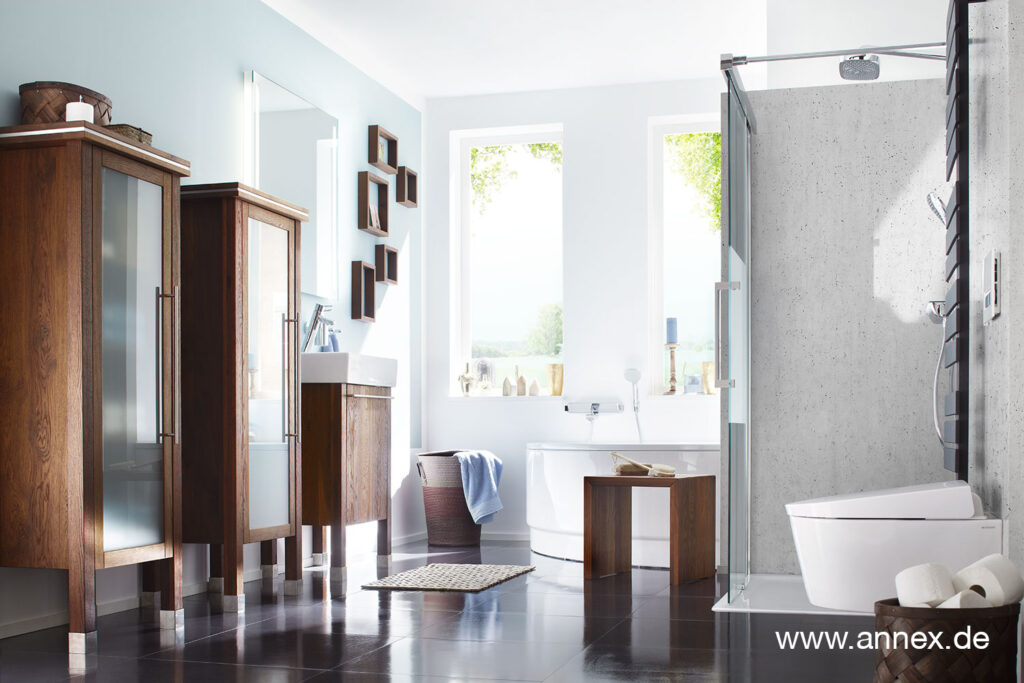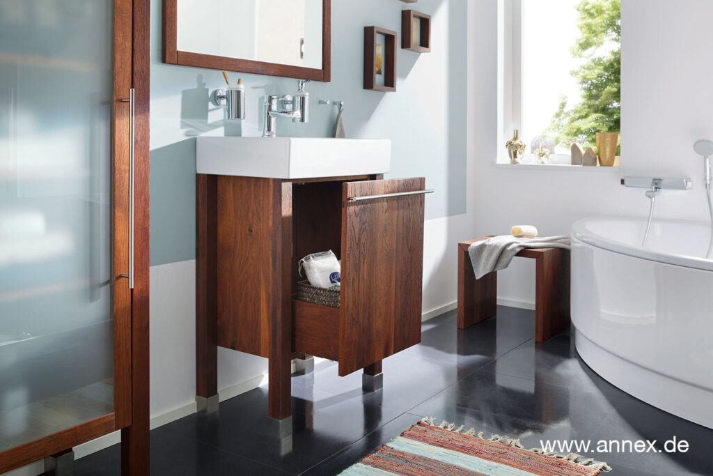 Mit annex dürfen Sie in Schönheit und Eleganz baden. Ohne Angst vor Nässe. Denn unser Massivholz eignet sich dank seiner