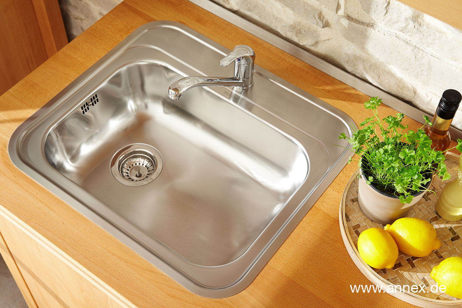Sauberer Abschluß: Abgestimmt auf die anderen Edelstahl Elemente unserer Modulküchen läßt sich diese Leiste an der Arbeitsplatte fixieren.