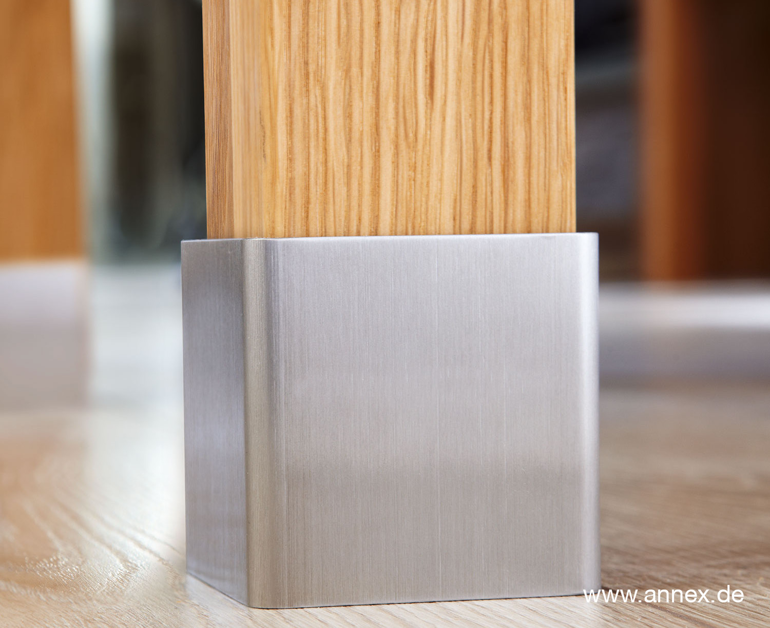 Mit handgefertigten Stulpen aus massivem Edelstahl schützen Sie nicht nur die Holzstollen gegen Beschädigungen. 3 mm Wandstärke machen Sie zudem zu einem coolen und unverwechselbarem, zusätzlichen Gestaltungselement.