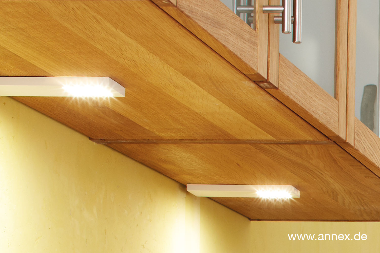 Es werde Licht: Diese formschönen LED-Leuchten setzen nicht nur Ihre Modulküche ins rechte Licht, sondern leuchten den Arbeitsplatz auch hervorragend aus. Die Strahler können sogar dort eingesetzt werden, wo keine schaltbaren Steckdosen vorhanden sind.