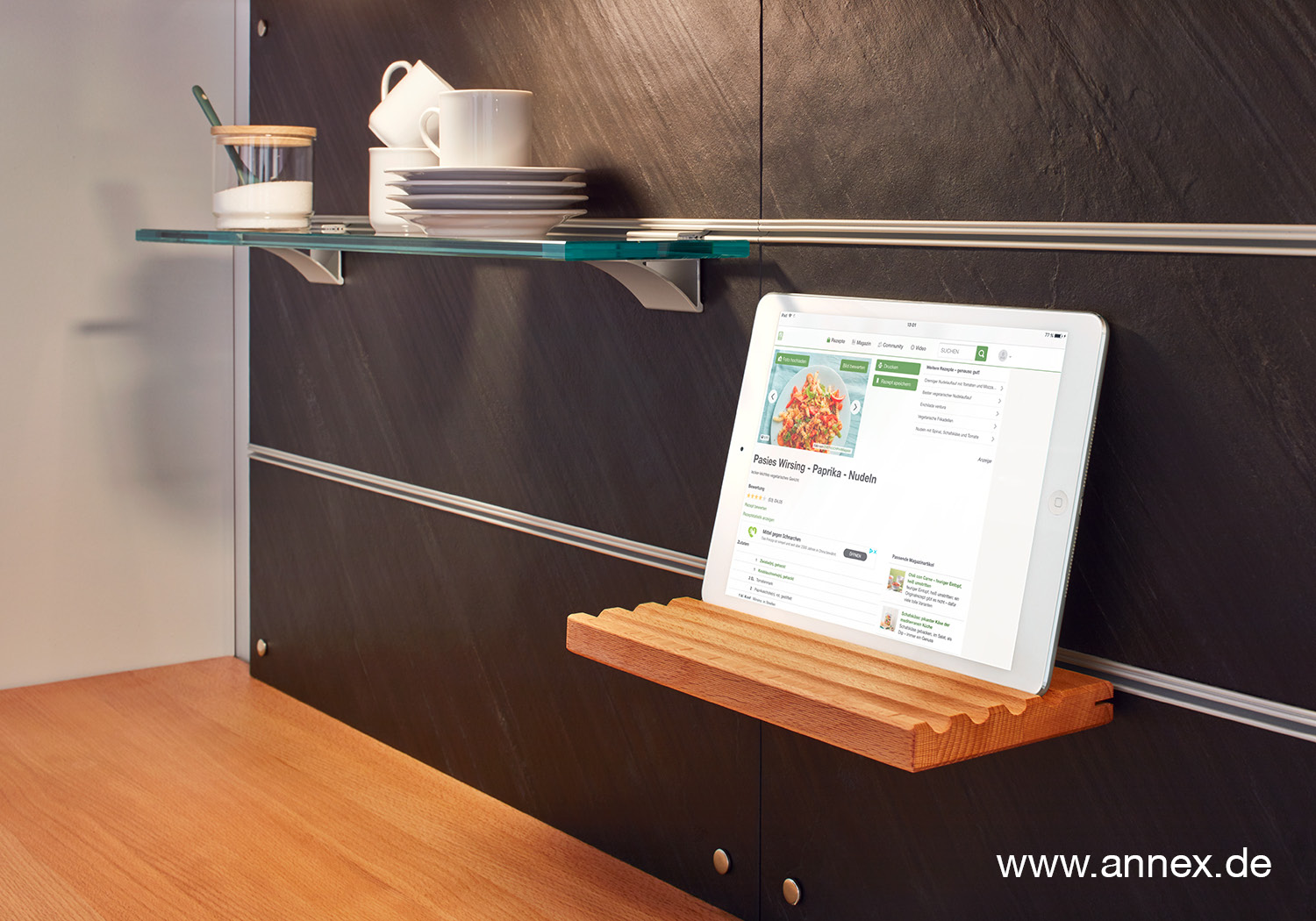 Nischenverkleidung aus Schiefer. Optional mit Schienensystem zum Einhängen von praktischen Ordnungssystemen.