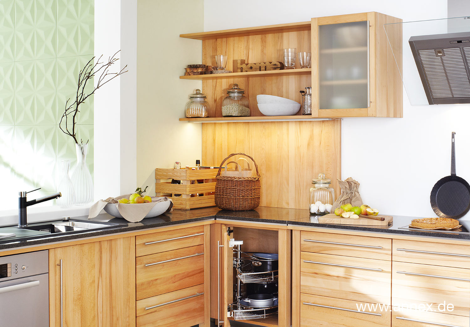 Mit unseren Massivholzmöbeln können Sie die traditionelle, klassische Winkelküche ganz neu interpretieren.