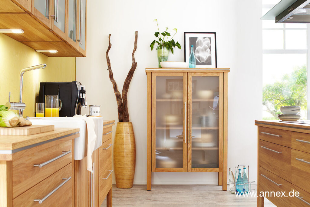 Wem das Geschirr zum „Wegstellen“ zu schade ist, der präsentiert es: stilvoll hinter den satinierten Glastüren unserer Vitrine!