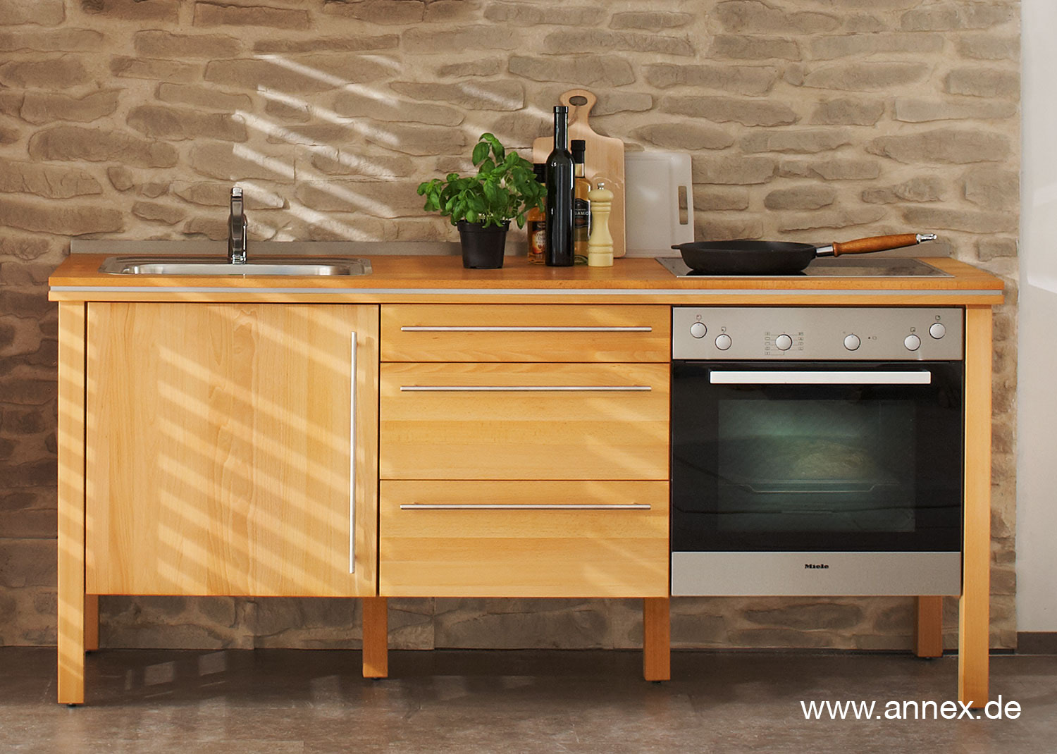 Als Preisbeispiel kleine Naturholzküche als Singleküche finden Sie diese Konfiguration in unserem onlineshop.