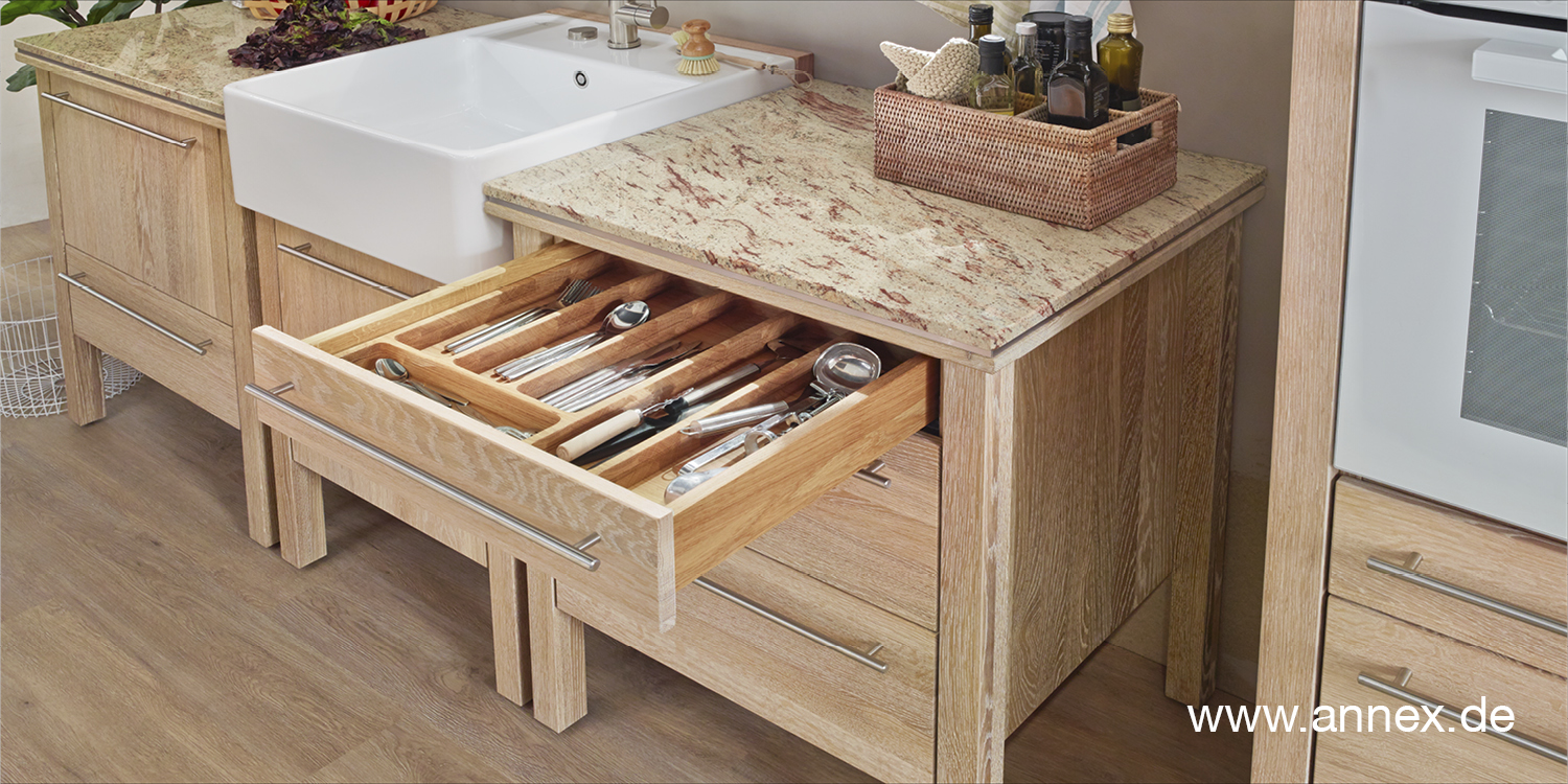 Damit Ihre Traumküche „wie gemalt“ aussieht, erfolgt der Auftrag der Lasur natürlich in Handarbeit. So entstehen Oberflächen, die sich sehen lassen können. Und zum perfekten Innenleben passen…
